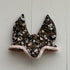 Oornetje bruine stof met gekleurde bloemetjes met roze bies